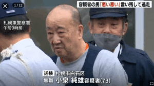 31日午前、札幌東警察署から検察庁へ送られる際の映像で、小泉純雄容疑者の顔画像が報道各社により公開されました。
