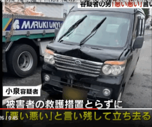 ところが、小泉容疑者は救護措置を取らずに現場から逃走。その際、「悪い悪い」と謝るような言葉を残して立ち去ったことが、関係者の話で分かっています。