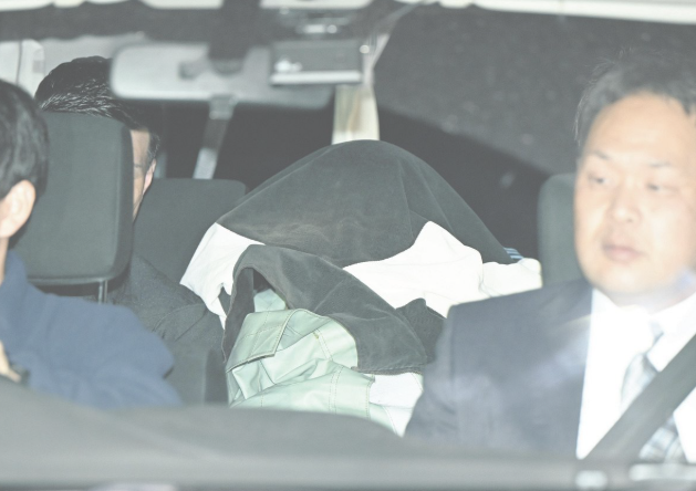容疑者(中央)の顔はしっかり隠されており、確認することはできませんでした。