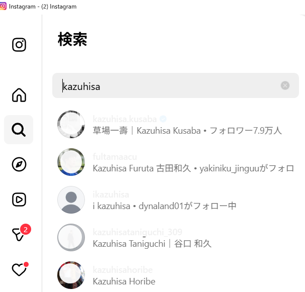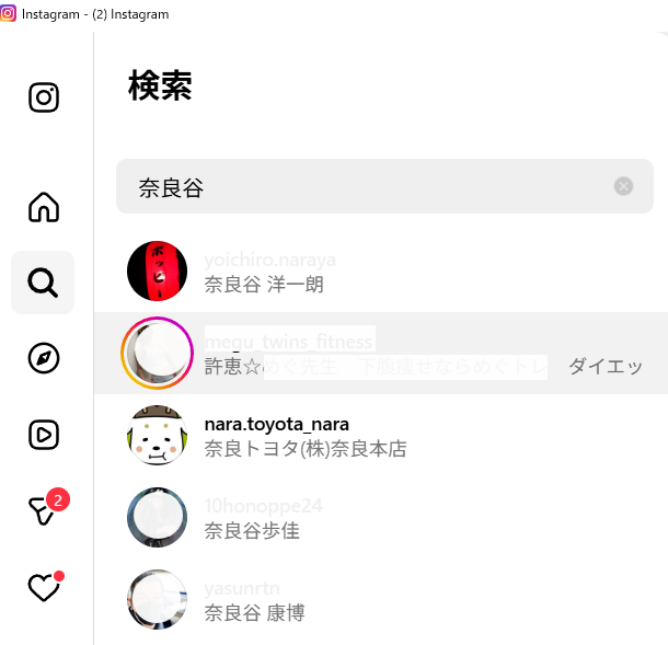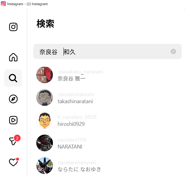 奈良谷和久のSNS情報を確認するため、Instagramで「奈良谷和久」フルネームや珍しい苗字なので「奈良谷」で検索しました。